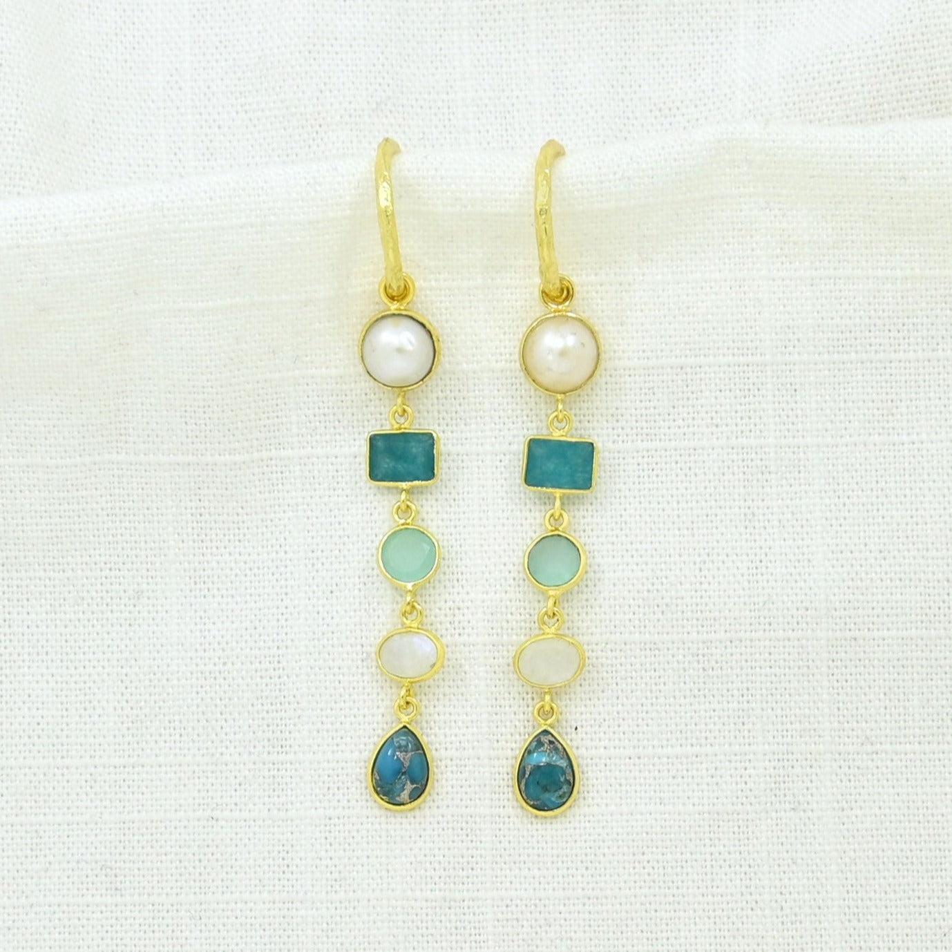 Gemstone : Natural Pearl, Aquamarine Chalcedony, Moonstone, Blue Turquoise & Neon Blue Apatite
