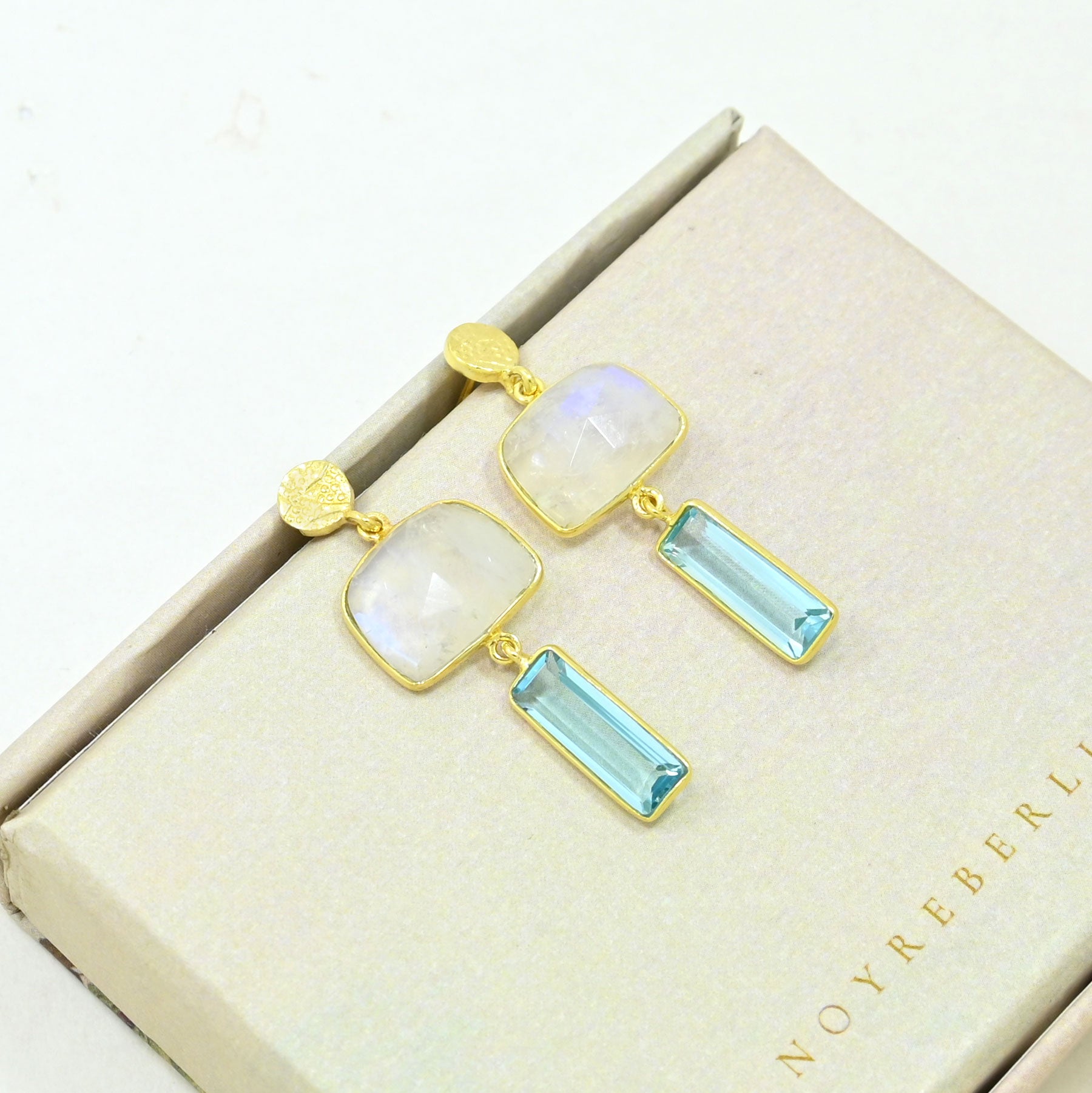 Gemstone : Rainbow Moonstone & Blue Topaz