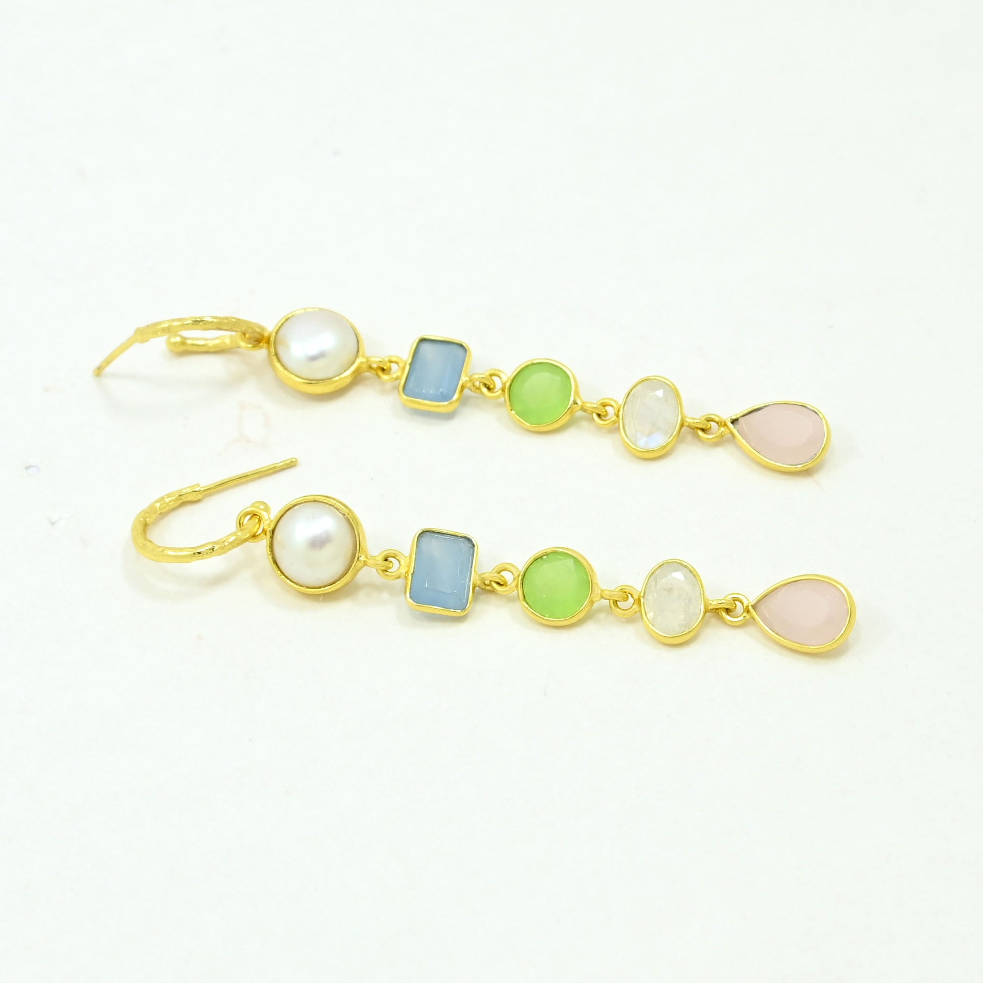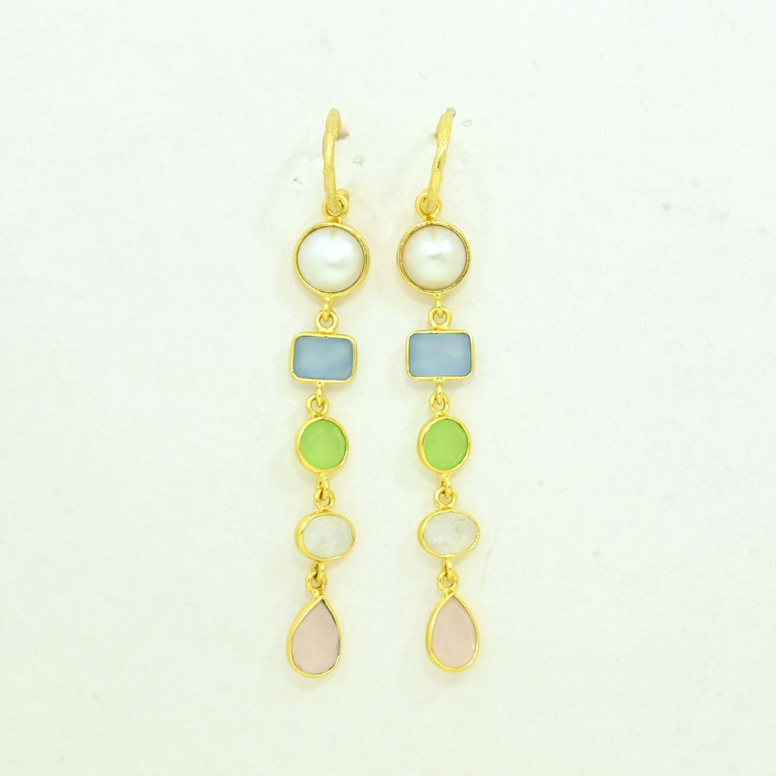 Gemstone : Natural Pearl, Blue Chalcedony, Moonstone, Green Prehnite & Rose Quartz